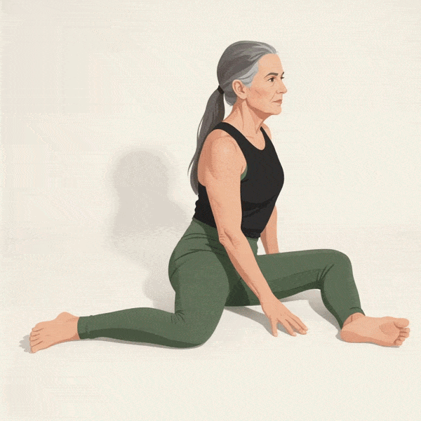 Why it matters: Full hip rotation is what separates people who move freely in their seventies from those who shuffle. This stretch addresses the rotational range of motion that most hip work skips entirely.