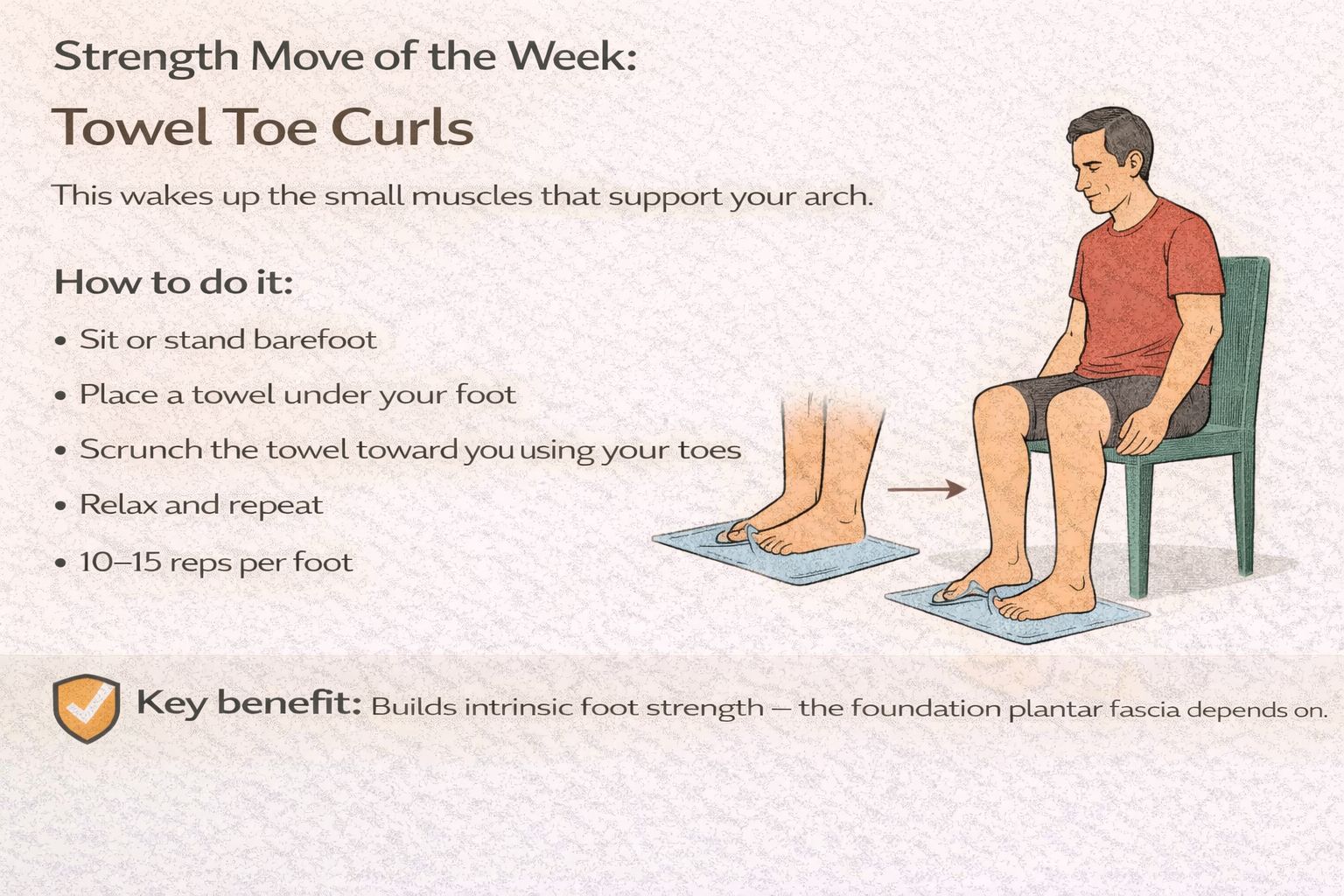 Builds intrinsic foot strength — the foundation plantar fascia depends on.